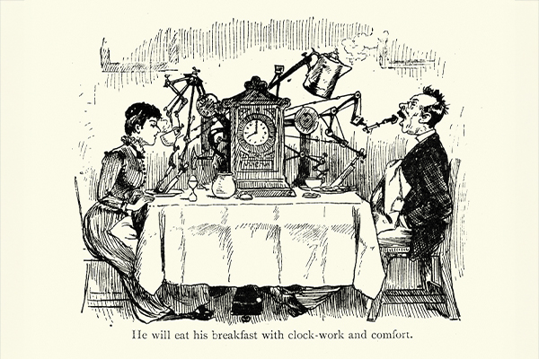 <div class="wp-block-reyrey-js-column"><!-- wp:reyrey-js/paragraph {"content":"The year was 1899, and French artist Jean-Marc Côté, along with several other Parisian illustrators, was asked to dream up the world 100 years into the future. Together, their visions, which included sky-high cities, flying cars, and robot servants, were turned into picture cards capturing the marvels of the year 2000. Influenced by the likes of Jules Verne, the father of science fiction, the artists imagined a world where automation did it all: cleaned homes, gave haircuts, applied makeup, and served patients in hospitals. Nothing seemed too small or too large for a machine to handle."} /-->
